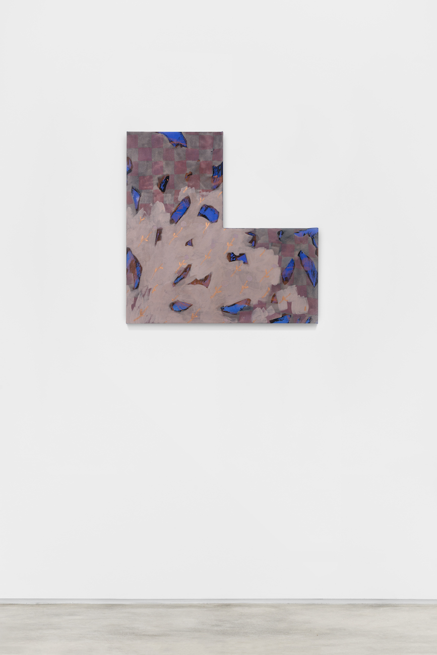 2. In And And, 2016—2019, Triptych; 75 x 62 inches (190.5 x 157.5 cm) overall, Acrylic and oil pastel on cotton and linen